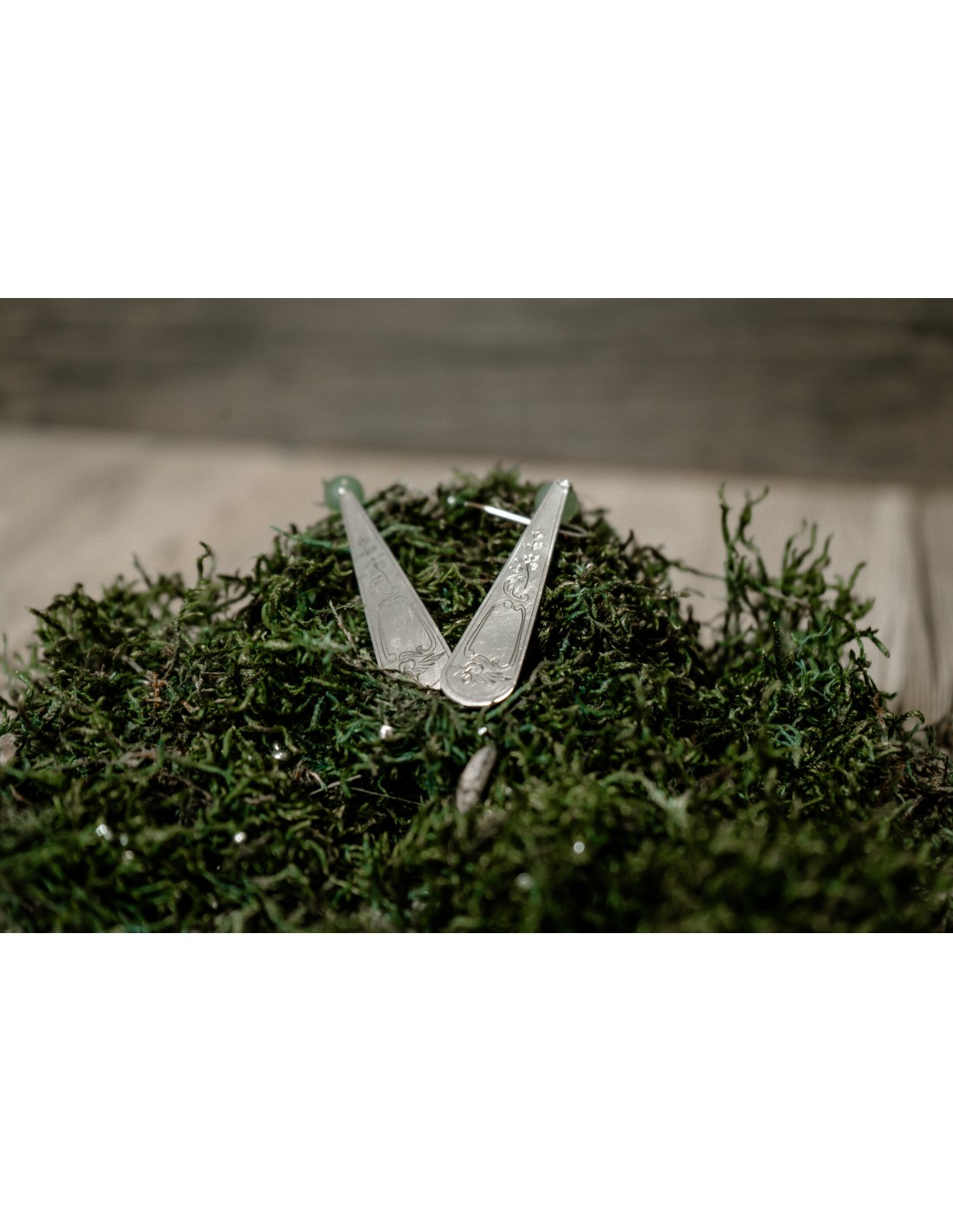 Pendientes inspirados en piezas de cubertería en plata y piedra natural