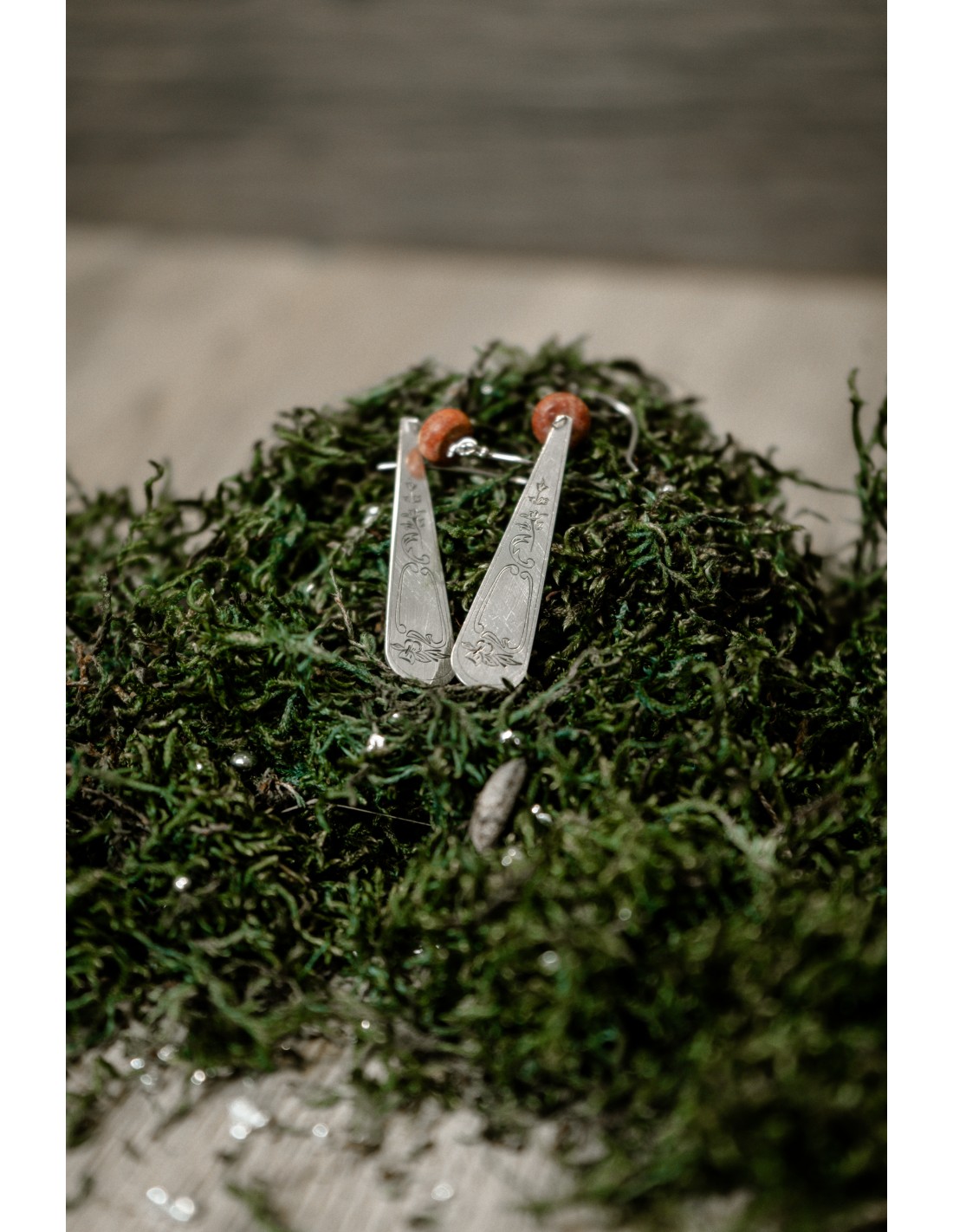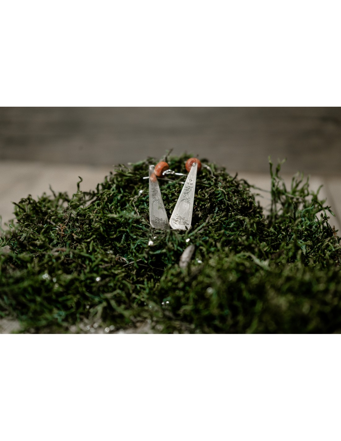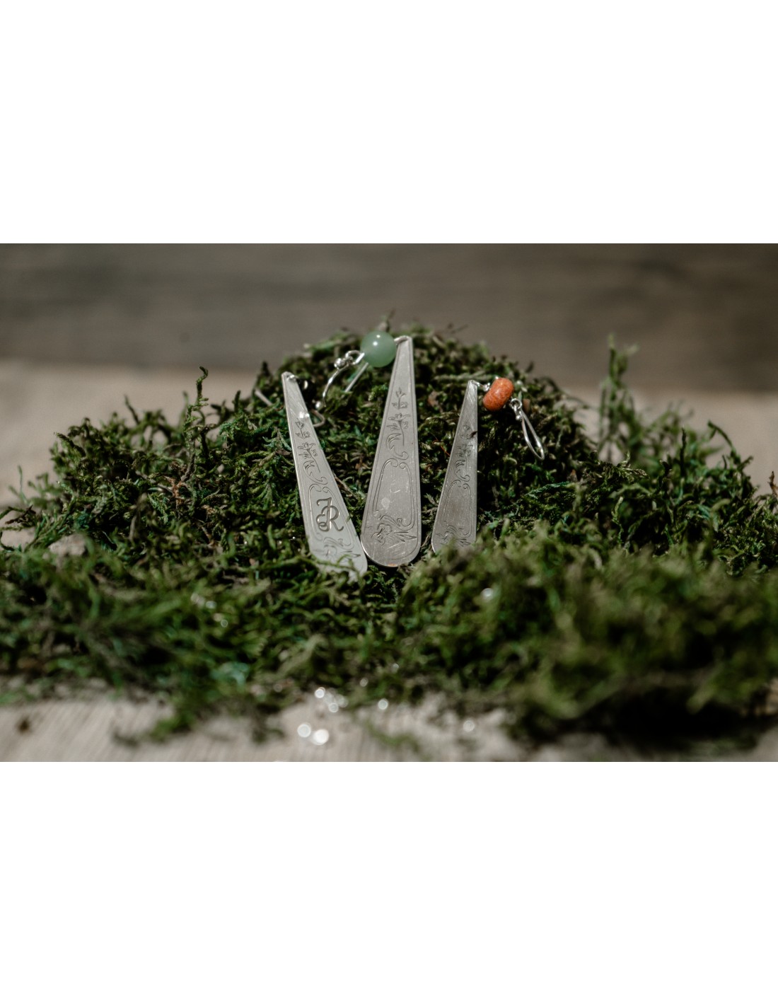 Pendientes inspirados en piezas de cubertería en plata y piedra natural